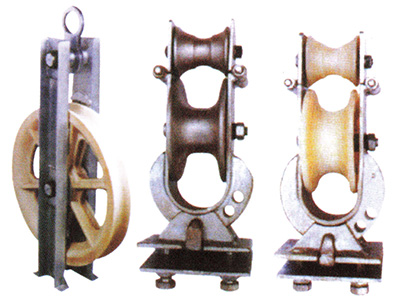 ■ 適用于在直線桿的角鋼橫擔上展放小面積的導線,上面有防止跳線的保險裝置,按材質分為鋁合金輪或MC尼龍輪。